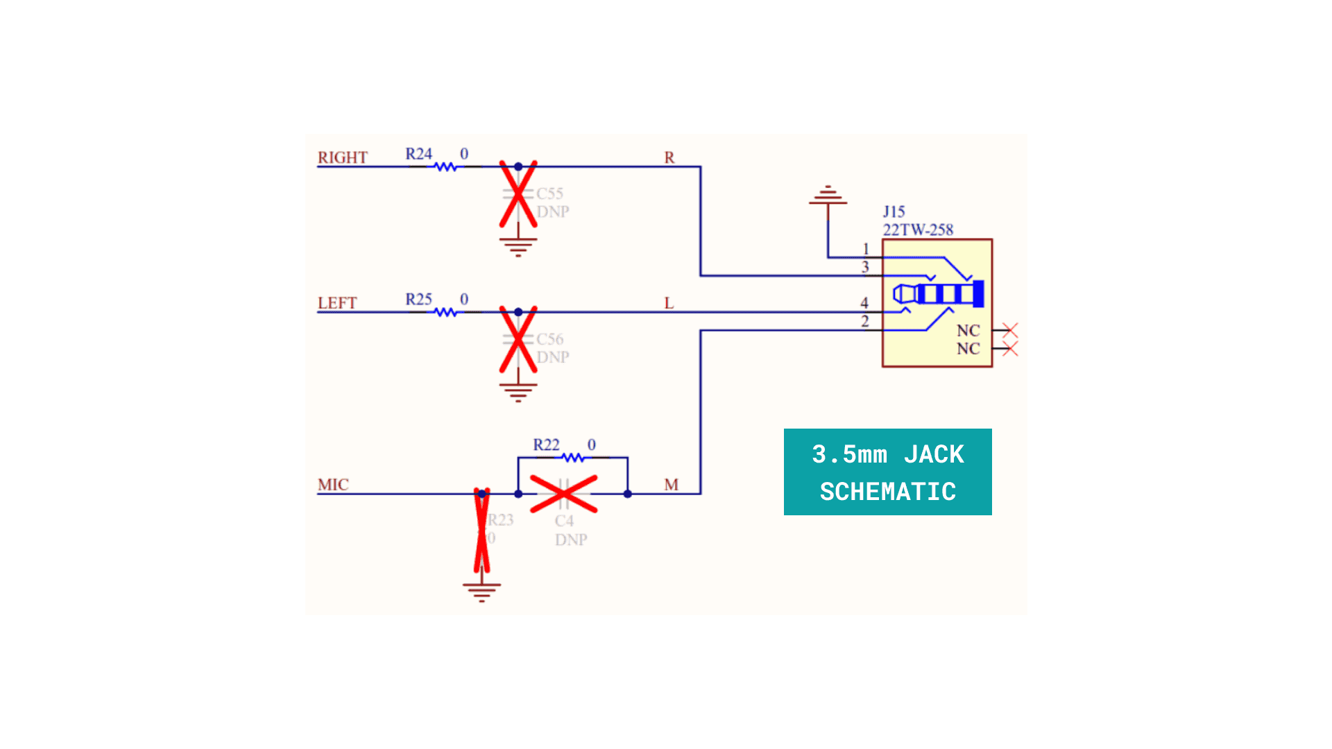 A7, DAC0, and DAC1 can also be accessed via the built-in TRRS 3.5mm jack. DAC0 is connected to ring 1 (right channel), DAC1 is connected to the tip (left channel), and A7 is connected to ring 2 (microphone) of the jack, as shown in the schematic below: