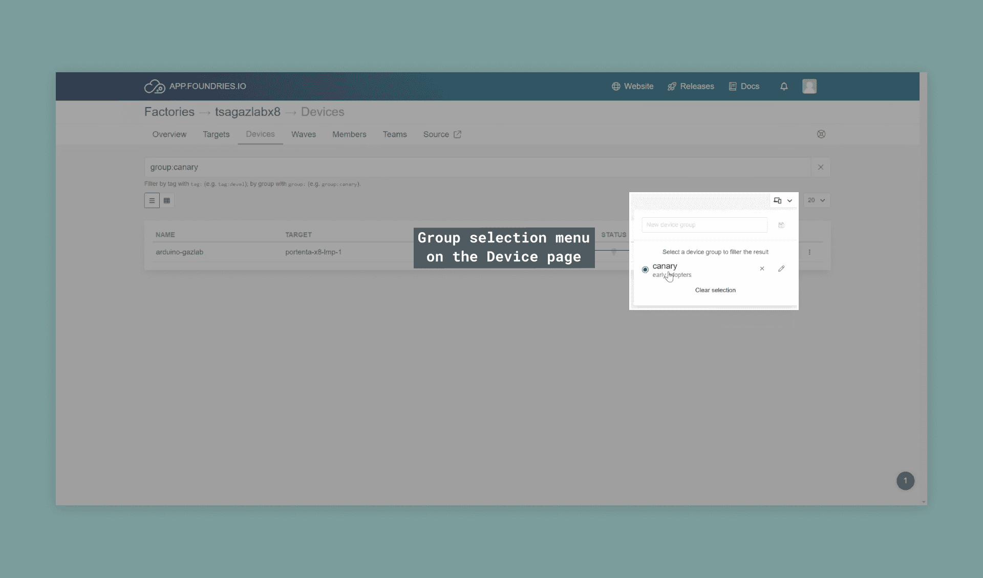 In this tutorial, we first looked at what is required to use the Wave tool. We then went through the process of creating a Wave and device group. Then we pushed a target to the device group using the Wave tool. With this, you have learned to use FoundriesFactory® Waves Fleet Management for multiple Portenta X8.